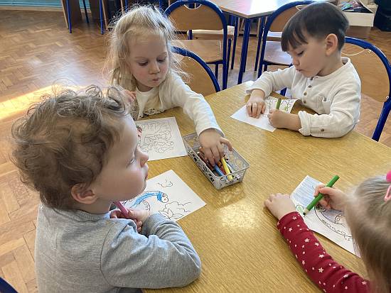8.04.2016r 2-3-latki z Przedszkola Nr 4 poznały kolejną formę książki- zabawki. Tym razem była to kolorowanka.Ponieważ nie tak dawno były święta , to przeczytaliśmy bajeczkę pt. " Pisanka z niespodzianką". Przeglądając książeczkę, dzieci dowiedziały się , że można ją nie tylko poczytać , ale również pokolorować.