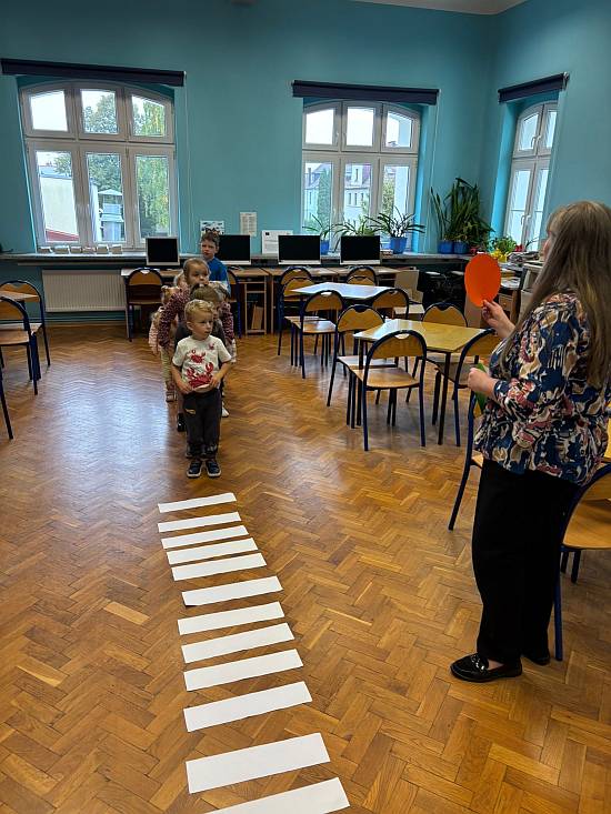 Na wędrówkę po lesie wybraliśmy się z maluszkami z PP nr 4 O/Oracze, które bawiąc się, miały okazję poznać mieszkańców lasu w ciekawy i angażujący sposób. Podczas spaceru mali odkrywcy mogli zobaczyć różnorodne zwierzęta i rośliny, które zamieszkują leśne ostępy. Interaktywna książeczka pozwoliła na poznanie ich nazw, zwyczajów oraz charakterystycznych cech. Dzieci mogły dotykać, odgadywać zagadki i odpowiadać na pytania, co sprawiło, że nauka była zarówno edukacyjna, jak i pełna radości.