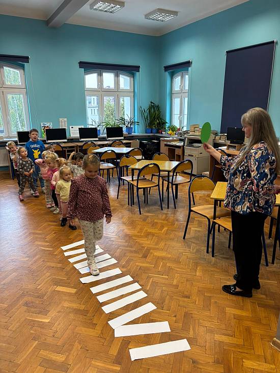 Bardzo zależy nam na bezpieczeństwie naszych czytelników, szczególnie tych najmłodszych , dlatego też zaprosiliśmy przedszkolaki z grupy MORZE PP Nr4, by wspólnie porozmawiać o przepisach ruchu drogowego. Dzieci poznały działanie sygnalizacji świetlnej oraz przećwiczyły bezpieczne przechodzenie przez jezdnię.