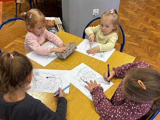 Dzień Kota w bibliotece z udziałem 4-latków z PP nr 4 był pełen radości i kreatywności. Maluchy miały okazję nie tylko poznać zwyczaje i potrzeby kotów, ale również zaangażować się w różnorodne aktywności, które rozwijały ich wyobraźnię oraz zdolności manualne. Zajęcia rozpoczęły się od wysłuchania historii o udomowieniu kota oraz krótkiej prelekcji o jego budowie i rasach. Następnie przedszkolaki mogły podzielić się swoimi doświadczeniami z posiadaniem kotów lub obserwowaniem ich w okolicy. Układanie puzzli oraz przeglądanie przygotowanych książeczek o kotkach pozwoliło na chwilkę odpoczynku po zabawach ruchowych. Kolejnym punktem programu były zajęcia plastyczne. Dzieci z entuzjazmem zabrały się do rysowania ilustracji bajkowych kocich bohaterów.