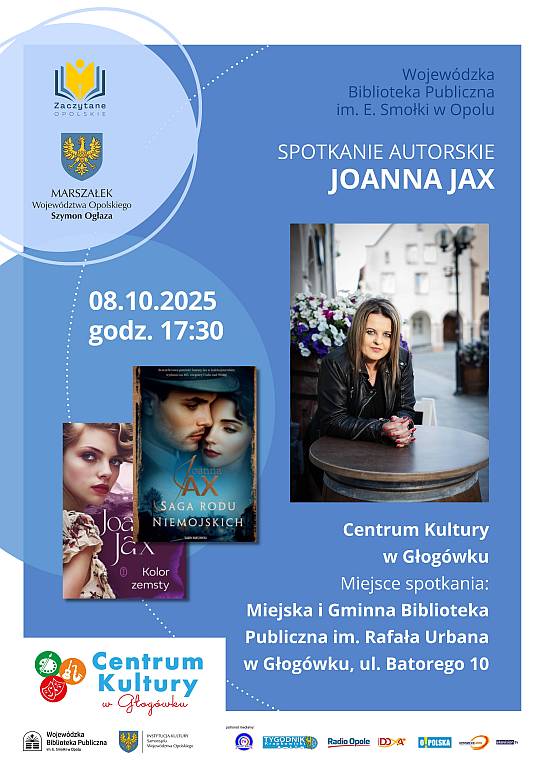 Z ogromną przyjemnością wspominamy gościnę w naszych skromnych progach, którą zaszczyciła nas niezwykła pisarka Joanna Jakubczak, znana szerokiej rzeszy czytelników pod literackim pseudonimem Joanna Jax. To autorka, która od lat łączy w swoich powieściach pasję do biografii i historii z błyskotliwym, żywym piórem, tworząc sagowe opowieści, które porywają i skłaniają do refleksji. Jej twórczość wpisuje się w nurt literatury biograficzno-historycznej, gdzie tło historyczne nie jest jedynie tłem, lecz integralnym elementem fabuły, a bohaterowie ożywają dzięki autentycznym portretom psychologicznym i misternemu odwzorowaniu epoki. Spotkanie odbyło się w ramach akcji " Zaczytane opolskie".