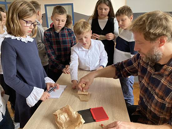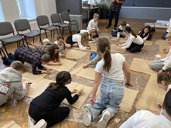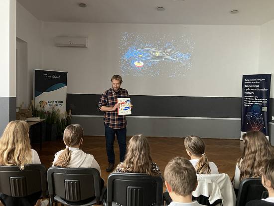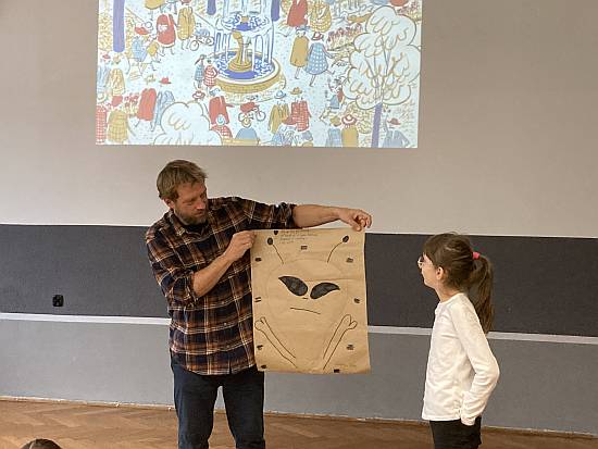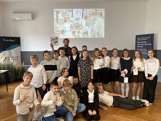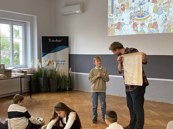 Warsztaty dla dzieci przeprowadzone przez ilustratora Roberta Czajkę