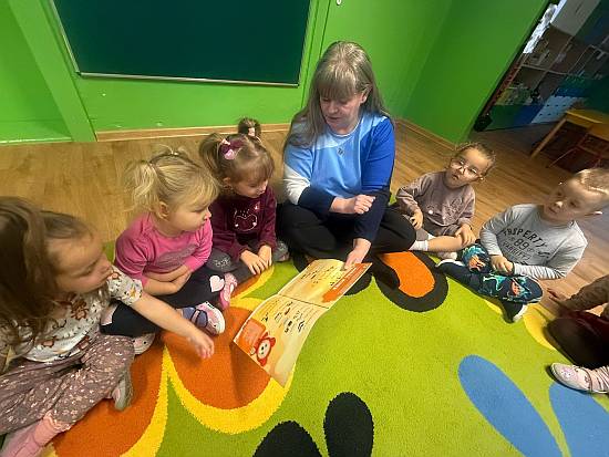 10.05.2016r 3-4-latki z Przedszkola Nr 3 wysłuchały kolejnej bajki, w której bahaterami były zwierzęta pt " Odrzucony przyjaciel".