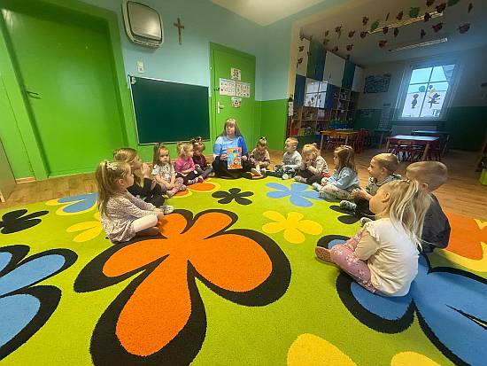 W trakcie zajęć dzieci wysłuchały opowiadaCspan "font-size: medium; color: #ffcc99;">