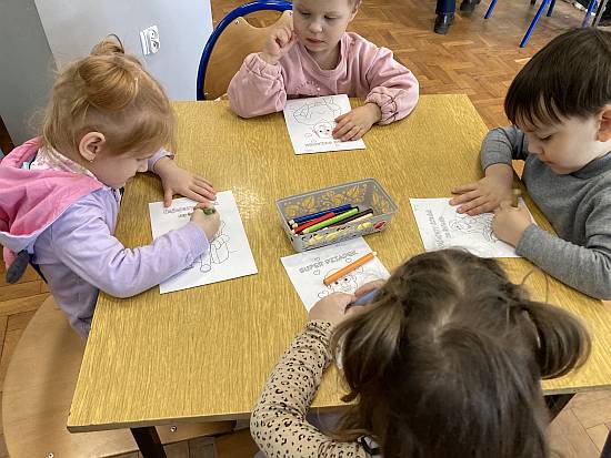 Przedszkolaki z PP Nr 4 z okazji Dnia Dziadka wysłuchały wierszyka o dziadku. Po zakończeniu czytania, dzieci zaczęły dzielić się swoimi własnymi doświadczeniami i opowieściami na temat swoich dziadków. Rozmawiały o tym, co lubią robić z nimi w domu – na przykład pieczenie ciasteczek, czytanie bajek na dobranoc, czy wspólne gry planszowe. Niektóre maluszki wspomniały, że ich dziadkowie uczą ich różnych piosenek lub pokazują, jak się robi na drutach. Dzieci podkreślały, jak ważne jest dla nich spędzanie czasu z dziadkami, bo czują się przy nich bezpieczne i kochane.