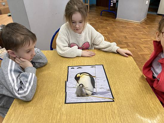 20 stycznia 2026 roku obchodzony jest Światowy Dzień Wiedzy o Pingwinach – ważna inicjatywa mająca na celu nie tylko przybliżenie wiedzy o tych fascynujących ptakach, ale także zwrócenie uwagi na poważne zagrożenia, z jakimi muszą się zmierzyć w zmieniającym się świecie. Podczas dzisiejszych zajęć, pięciolatki z PP Nr 4 aktywnie pogłębiły swoją wiedzę na temat tych niezwykłych ptaków. Dzieci dowiedziały się, gdzie żyją pingwiny, jakie mają zwyczaje, co jedzą, oraz jak wyglądają ich naturalne środowiska. Przedszkolaki poznały różne gatunki pingwinów, od tych najbardziej znanych, takich jak pingwin cesarski i Adeli, po te mniej popularne, ale równie ciekawe. W trakcie zajęć dzieci słuchały opowieści o tym, jak pingwiny radzą sobie w ekstremalnych warunkach Antarktydy, jak opiekują się swoimi młodymi i jakie zagrożenia czyhają na nie w dzisiejszym świecie.
