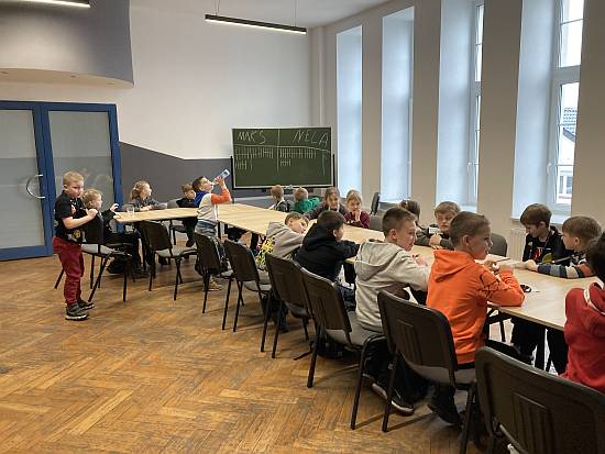 W miesiącu listopadzie w filii bibliotecznej BASZTA odbyły się zajęcia pt. "Historia pisma i książki", w czasie których uczestnicy poadczeniami i pomysłami ( nie było to trudne, ponieważ okazało się ,że niektóre pania rękopiśmienna, a także kto wynalazł druk. Mieli też okazję stworzyć własną tabliczkę glinianą oraz pisać ptasim piórem. Na zakończenie dzieci rysowały swoje inicjały.